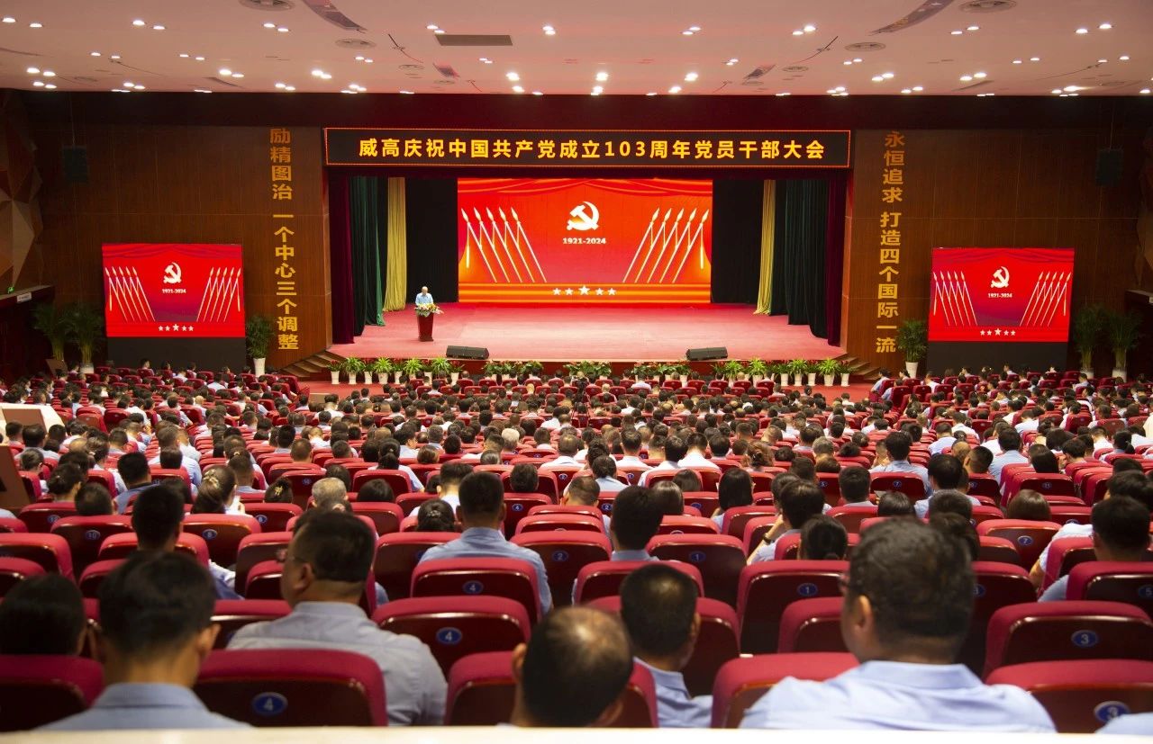 7月1日上午,威高集团隆重召开党员干部大会,庆祝中国共产党成立103周年,回顾党的光辉历程,讴歌党的丰功伟绩,传承党的革命精神,进一步激发干事创业动力。集团1200多名党员干部参加了大会。
